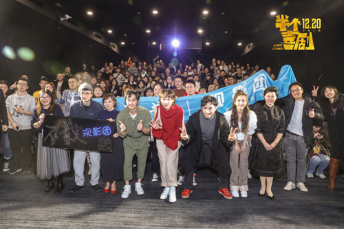12月18日,由周申、刘露编剧兼导演,任素汐、吴昱翰、刘迅、汤敏、赵海燕主演的电影《半个喜剧》在北京举办了“整个开心”首映礼。编剧兼导演周申、刘露,主演任素汐、吴昱翰、刘迅、汤敏、赵海燕、裴魁山、梁瀛悉数亮相,坦率交流影片“嬉笑怒骂,全是真实”的幕后点滴,见证观众“开怀大笑”的观影收获。活动现场,观众数次响起掌声与笑声,该片也被封为“年度解压神器”。而面对片中感情观的讨论,导演周申、刘露也表示:“希望大家不要把这个圆满的结局看作是种理想主义,而是把它看作是现实主义下的一种可能的出路。”更有不少观众表示片中的“北漂”“户口”“租房”等贴近生活的话题,也真实刻画了当代“社畜”们的生活,主演吴昱翰还因其饰演的孙同在现场获封“社畜代言人”。