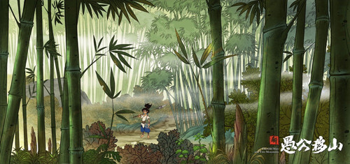 从先导海报及系列概念图中,不难发现《新愚公移山》的独特美术风格。电影借鉴宋画集大成之作《千里江山图》的风格与意境,勾画精细、人物灵动、色彩绚丽。电影的音乐同样独具匠心,大量采用豫剧风格,构建起别出心裁的民族化视听语言。